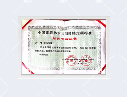 中國建筑防水堵漏修繕定額標準編制專家證書